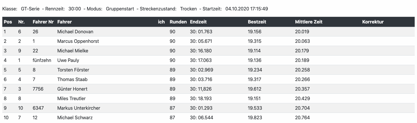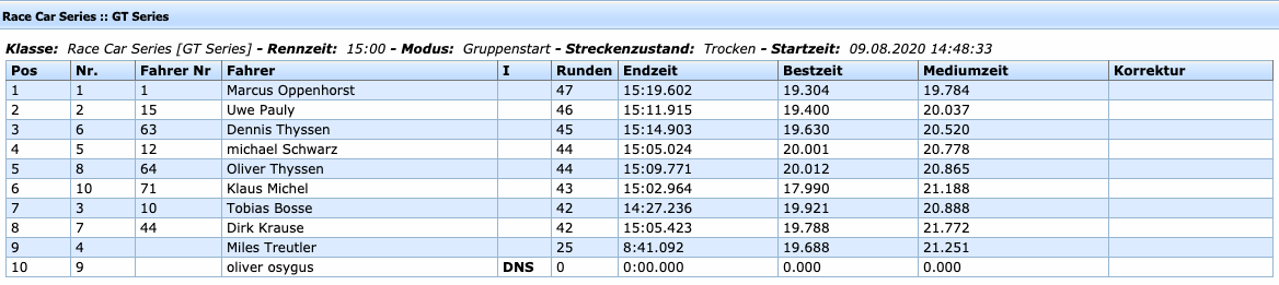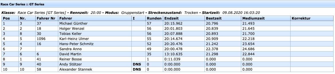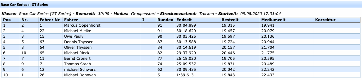 The tension was palpable during the A final. The results list speaks volumes more than I could ever write. From first to eighth place, the competition was so close that any of the eight drivers could have won. In the end, it was Michael Donovan in his Porsche GT3R who took the victory, ahead of Marcus Oppenhorst (BMW GT3 ALMS) and Michael Mielke (STtwo). A fantastic final, just like the others.