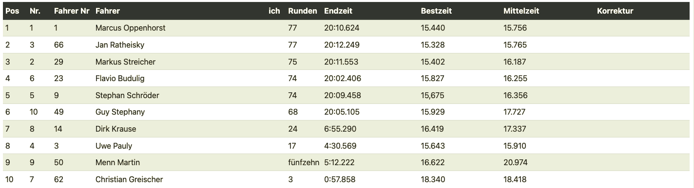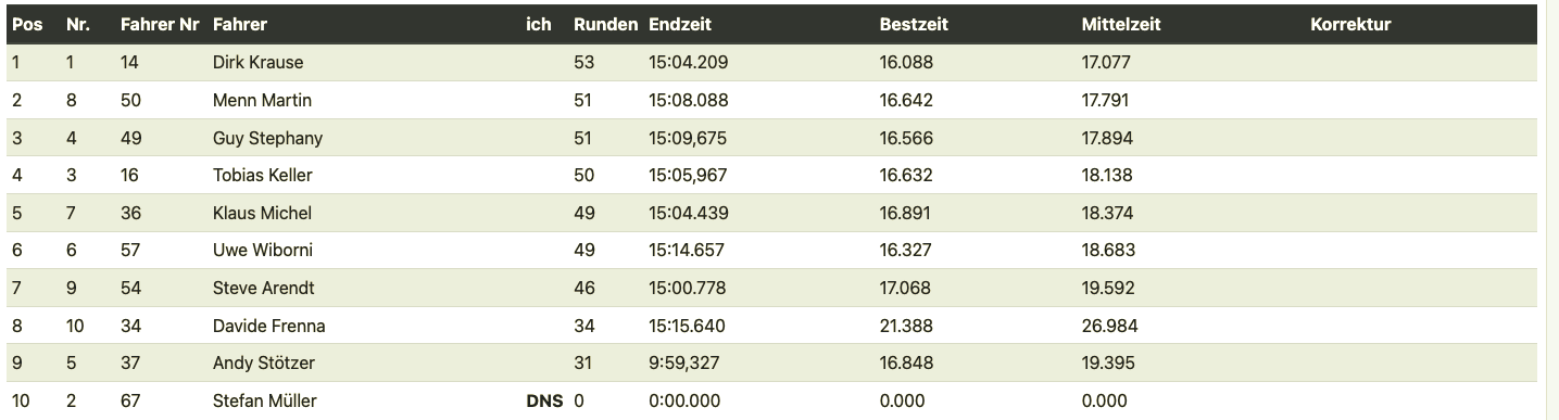 After the three preliminary heats, the results were as follows. Silvio showed that he's already won a German championship title in the rain. He and Robert are simply gods in the rain.