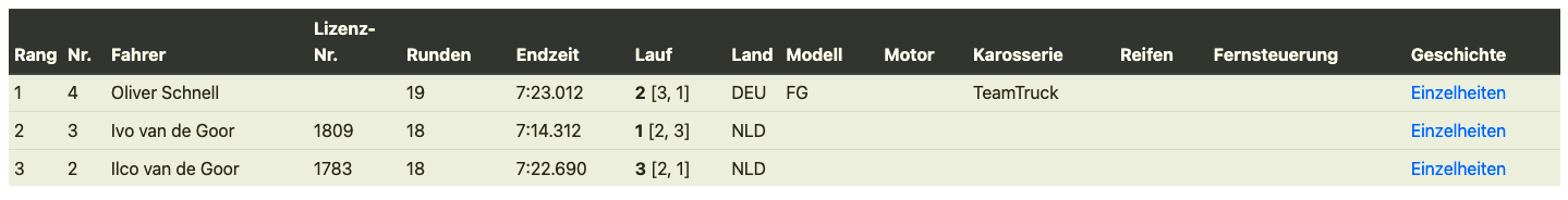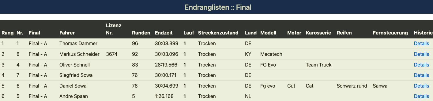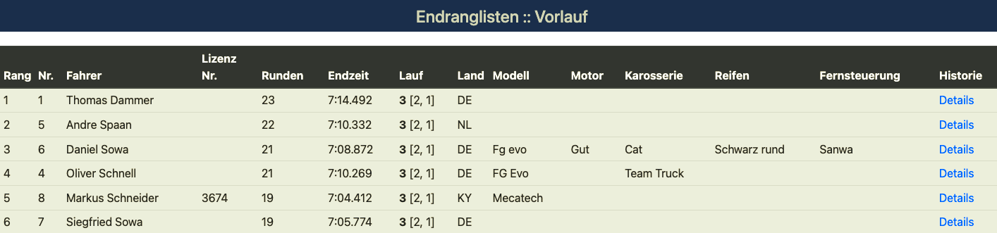 Well, there he was again. Thomas impressively demonstrated just how fast you can drive a truck. A start-to-finish victory for him. The resurgent Markus Schneider deservedly took second place ahead of Olli in third. It's a shame Andre had an unfortunate collision right at the beginning that forced him to retire. Otherwise, it might have been a bit more exciting.