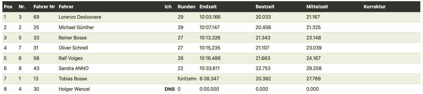 The Formula Challenge is enjoying very strong growth. This also means that the starting field and lap times are becoming increasingly competitive. Zero mistakes are the motto here as well, to secure a front-row starting position. After the preliminary heats, Silvio managed this best, followed by Jörg and Holger Plähn. Gogol was also close behind.