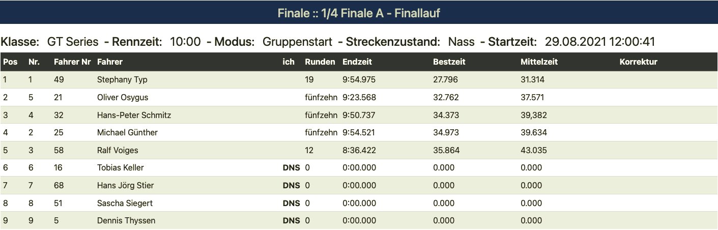 In the semi-finals, our Guy reappeared at the top. A sensational performance for the second time from him, and it wouldn't be the last. Markus Streicher showed that he, too, is a force to be reckoned with in the rain. And Tobi Bosse also drove very confidently to second place. It was great to see the roulette wheel spinning. This promised that the main finals could be very exciting.