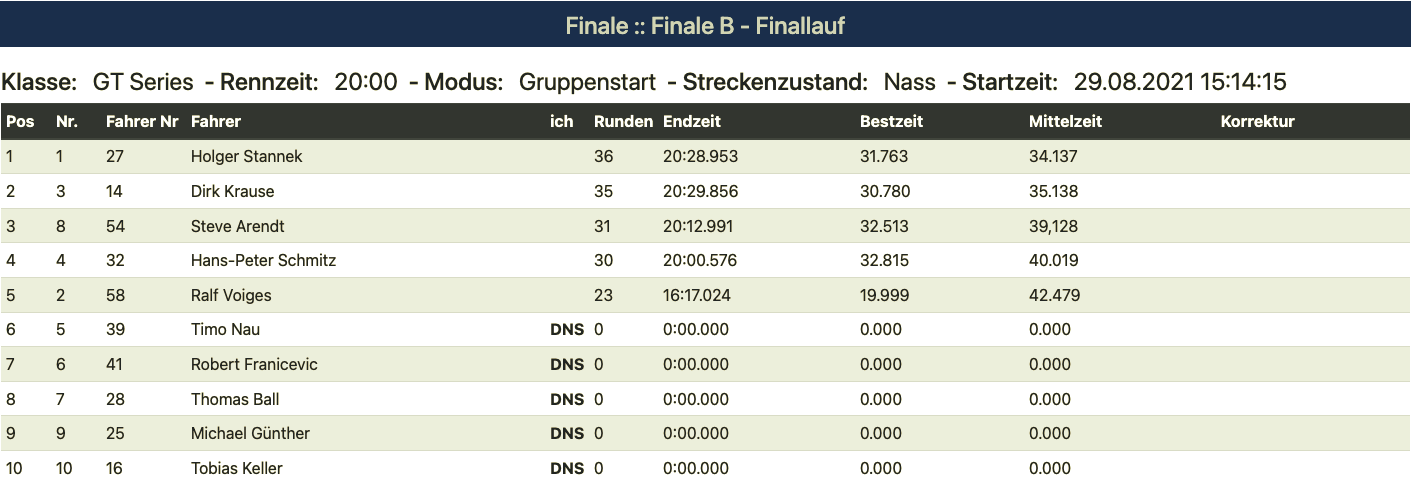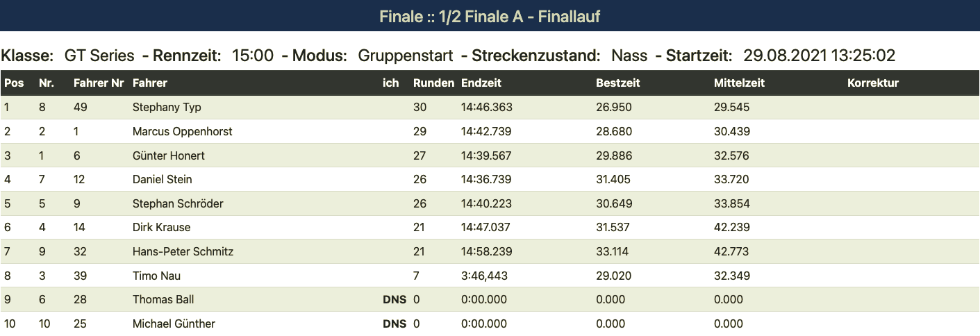 And what can I say, Guy Stephany took third place. I can only say chapeau! His final had one small blemish: he overtook Günter in the early stages. Günter had to let the whole field pull away. But here he showed once again that with all his experience and his calm, fast driving style, anything is possible. Second place was more than deserved in the end. Behind the two leaders, there was a trio whose excitement was unbeatable. Tobi, Marcus, and Markus battled for the entire 30 minutes for the last spot on the podium. It was absolutely fantastic. A big "chapeau" to all three of you as well. Pure entertainment value. Feel free to watch it again on pullstart.tv.
