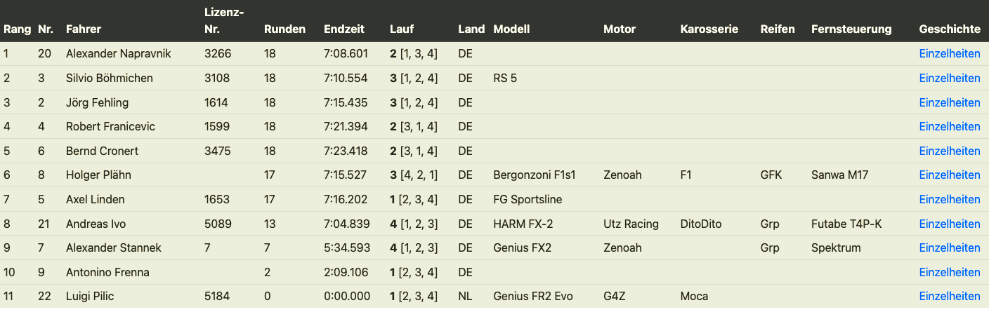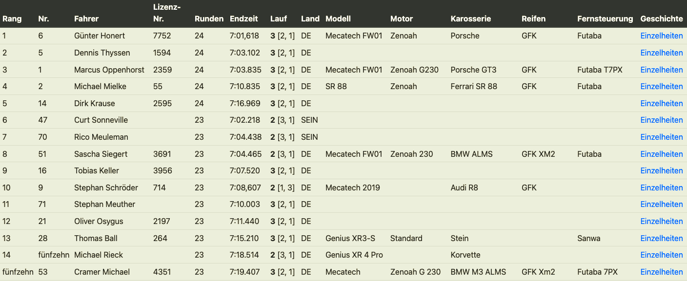 You are all the reason why my decision was so difficult. I've been involved in organizing the Race Car Series for three years now. This is my last race report for you. I'm retiring from organizing and active model racing for personal reasons. It makes me a little sad to let go, but also proud of what we've accomplished. Thank you to everyone who has supported me during this time. I'm leaving with many wonderful memories and a personal farewell in Luxembourg that I hadn't expected. Even as I write this, a few tears of gratitude are flowing.