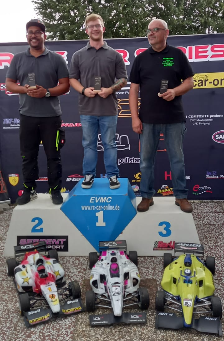 In theory, we would have had two more exciting semi-finals. Unfortunately, Holger Stannek had to retire his Formula car after the heats with an irreparable technical defect, ending his weekend prematurely. A real shame. So, the final was set. A 30-minute time limit was announced, which always means a refueling stop for a Formula car. Therefore, not only did the performance on the track have to be right, but also the pit strategy. The cool northerner from the south executed it best. Alex won the race more than convincingly ahead of Gogol and Jörg. Congratulations!